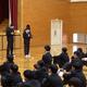 防犯&未来の警察官、絵手紙コンクールの優良賞の表彰を学校で行いました。優秀賞の表彰は先日、新見警察署で行われ、本校から2名の生徒が表彰されました。26日に本校にて、こちらも2名の生徒が表彰されました。「来年もぜひ応募してください」と言葉をかけられると「はい!」と元気に応じていました。