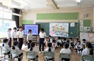 2年生は1年間の防災についての学習の集大成として、CM作成を行なっています。来月6日の参観日での発表に向けて、学校運営協議会委員の方や学区内の公民館長にお越しいただき、アドバイスをいただきました。14のグループに分かれて、それぞれが撮影した動画をもとにCMを作りました。テロップの出し方、構成や演技についてなどのアドバイスをしていただきました。